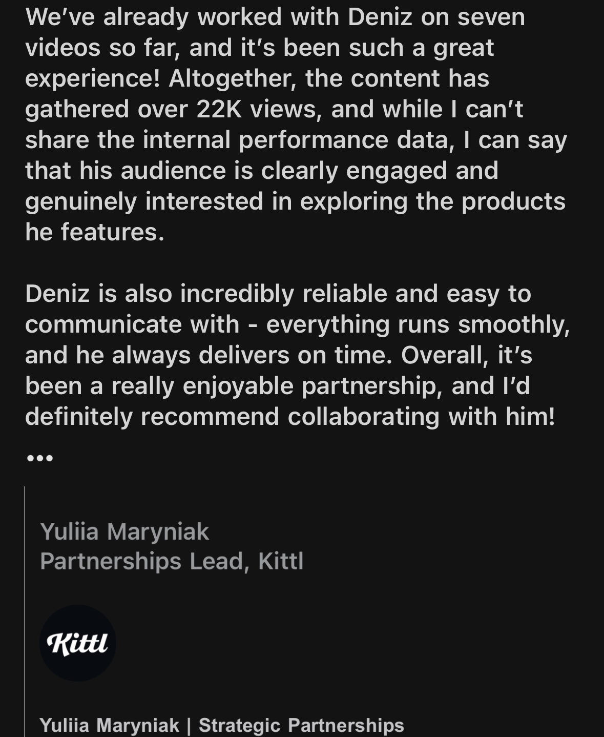 Worked with over 60 $1,000,000+ brands on social media content